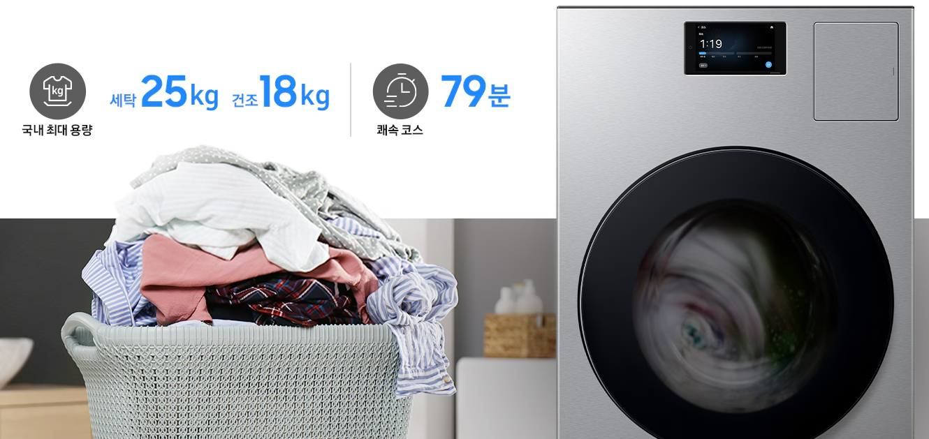 국내 최대 25kg 세탁, 18kg 건조 용량을 갖춘 이 올인원 세탁건조기, 과연 어떤 점이 특별할까요?